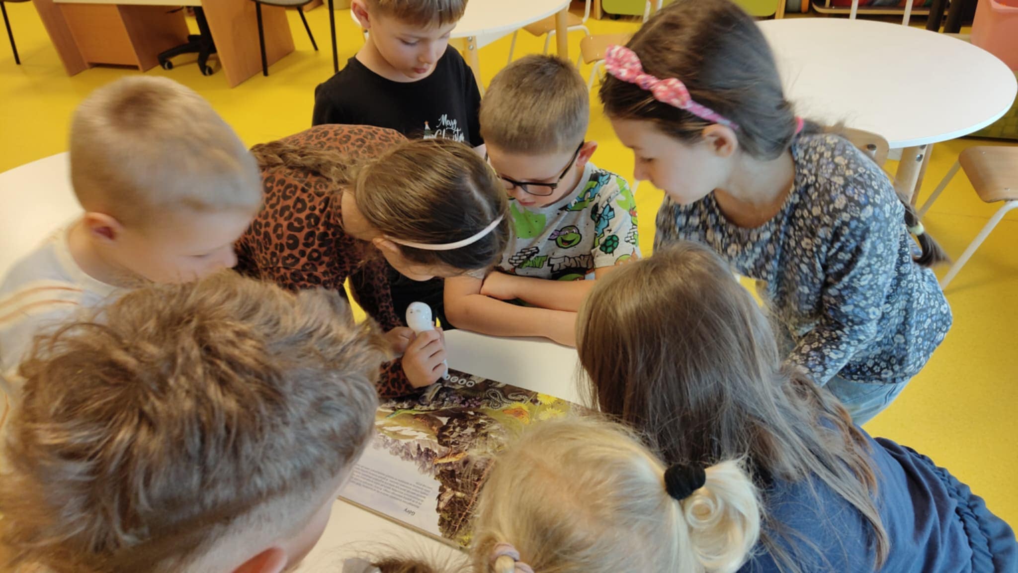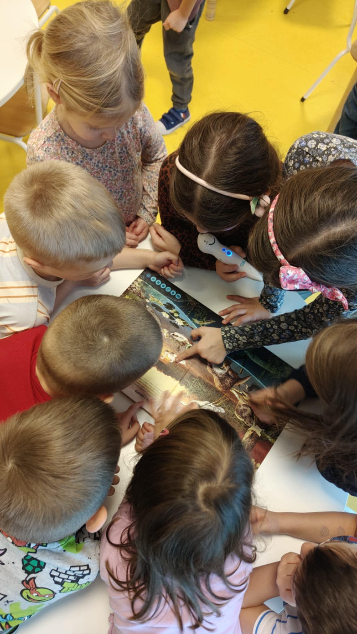 W ramach programu zakupiliśmy czytające pióro Albik. Dzięki temu starsze grupy mogą przychodzić do maluchów, aby poczytać im książki i pokazać ile ciekawych rzeczy można się z nich dowiedzieć.