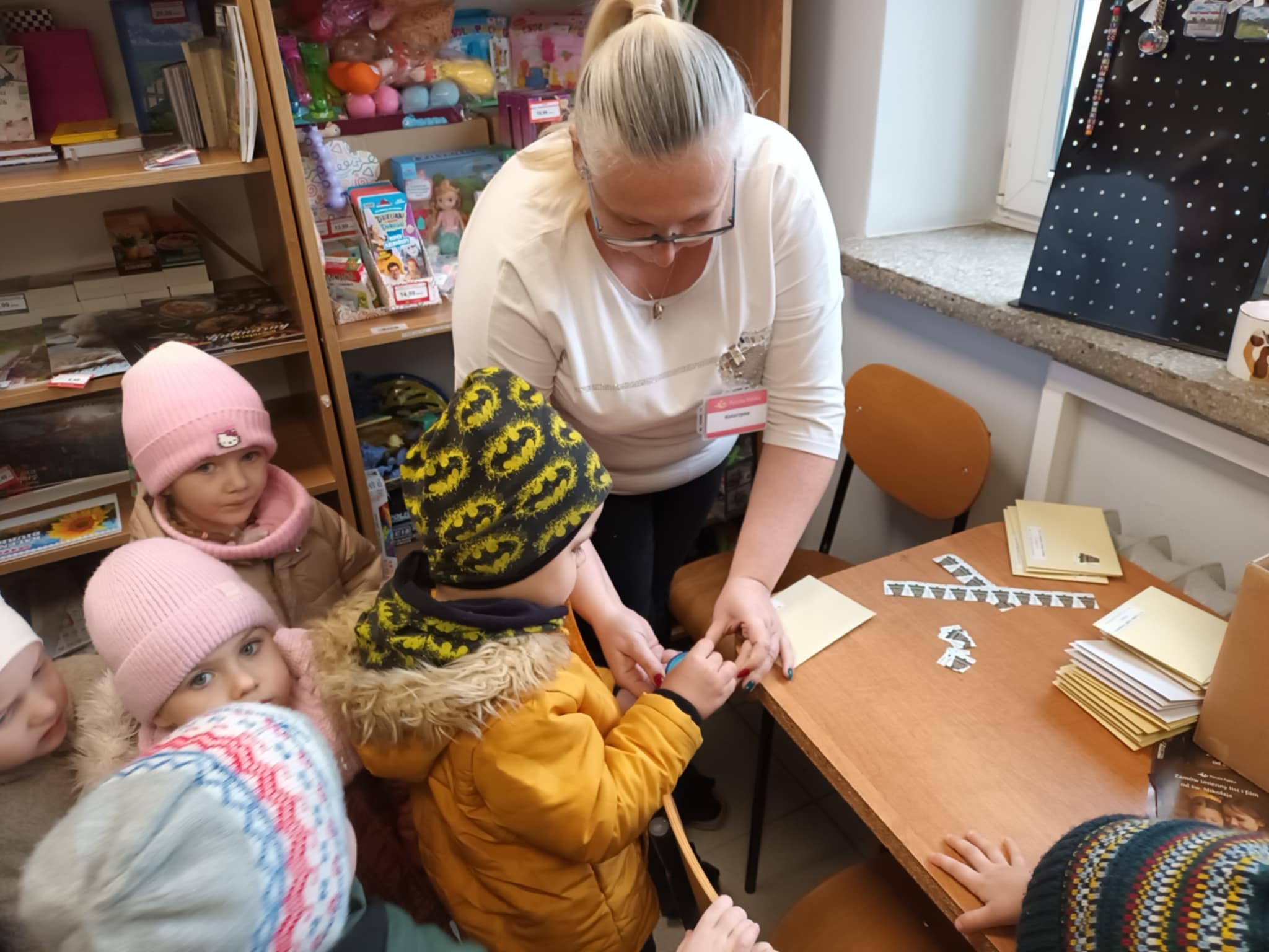 Jak co roku, aby tradycji stało się zadość przedszkolaki zawitały do Urzędu Pocztowego w Lipcach reymontowskich. Jeżyki wysłały kartki świąteczne z życzeniami do swoich rodzin. Pani Katarzyna Zielińska-Gejo jak zawsze przyjęła nas bardzo ciepło i serdecznie. Dziękujemy Pani za pomoc w pielęgnowaniu tradycji i miłą niespodziankę.