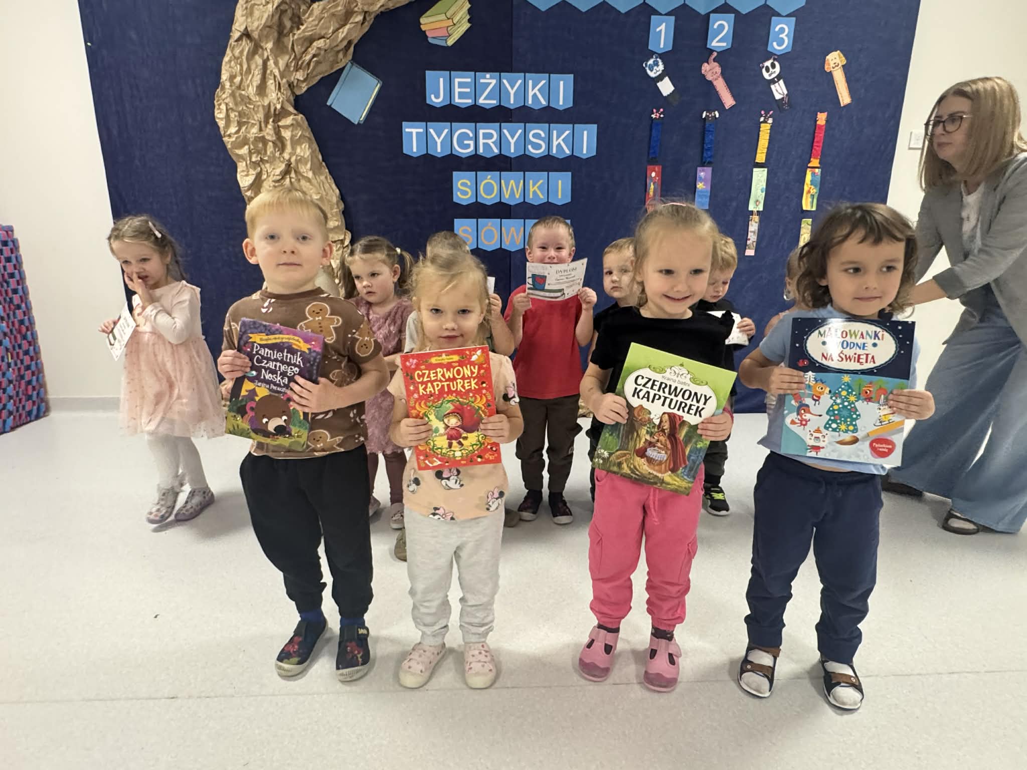 Kolejnym sposobem zachęcenia dzieci do korzystania z książek było wykonanie zakładek do nich. Dużo fajniej wraca się do pozycji, w której umieszczona jest nasza praca.