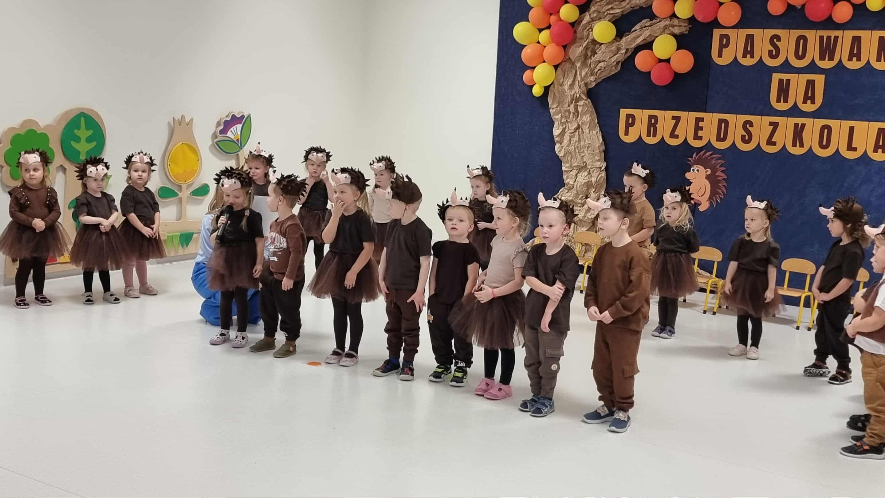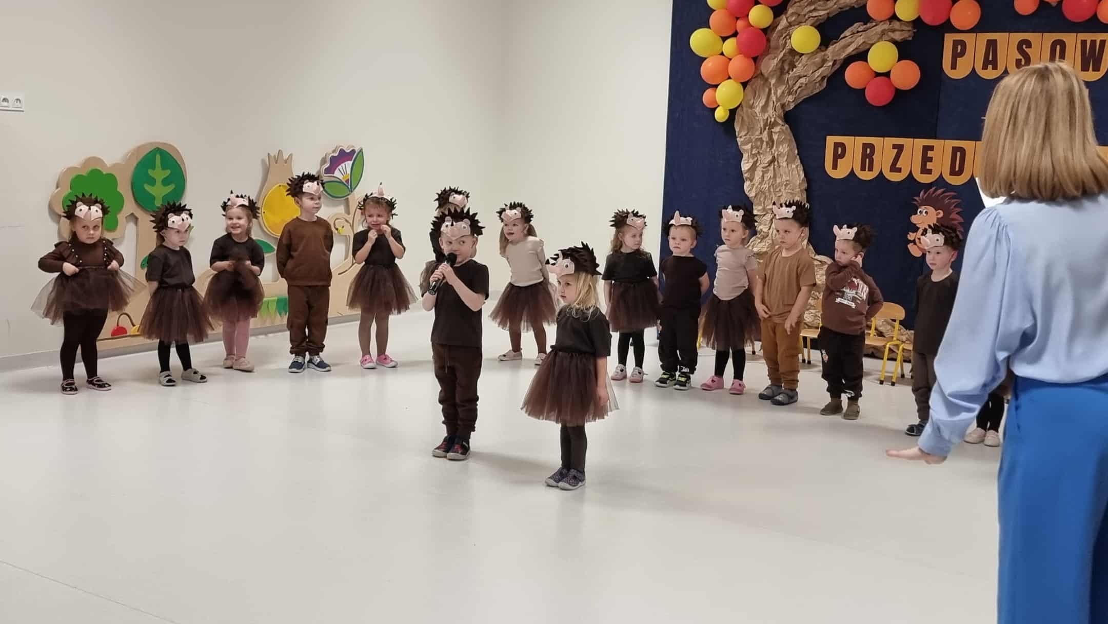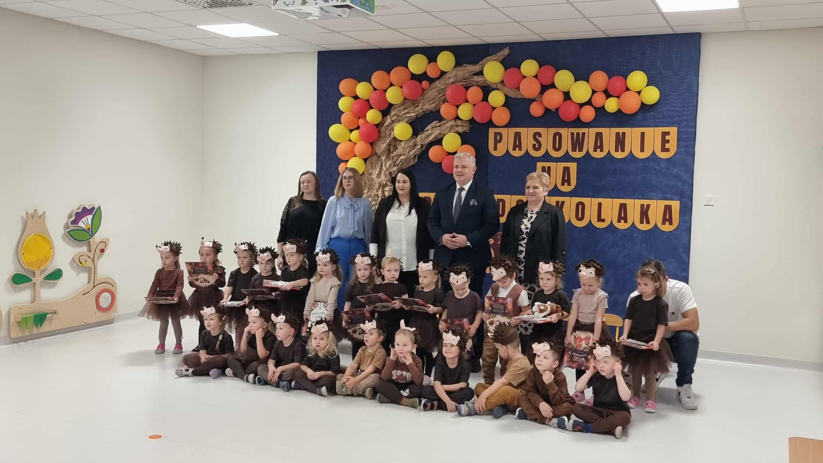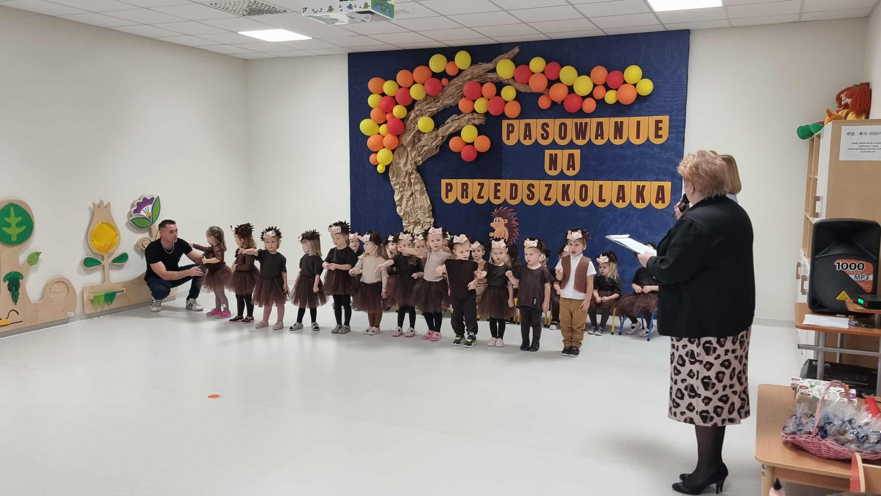 "My, Jeżyki przyrzekamy być dobrymi kolegami. Wszystkie dzieci w grupie lubić i "dzień dobry" głośno mówić. Grzecznie bawić się i fikać, zjadać wszystko z talerzyka. Na zajęciach nie przeszkadzać, zabawki na miejsca odkładać. I obiecać wszystkim wkoło - z nami będzie tu wesoło!" 14 listopada w naszym przedszkolu odbyło się wyjątkowe wydarzenie. Najmłodsze dzieci zostały oficjalnie przyjęte do społeczności przedszkolnej. To jeden z najważniejszych momentów na ich drodze edukacyjnej. "Jeżyki" zaprezentowały program artystyczny, w którym wykazały się niezwykłą odwagą i umiejętnościami zdobytymi z pomocą pani Kasi i pani Emilki. Decydującym momentem było pasowanie przez Panią Dyrektor tradycyjną kredką. Przedszkolaki z wielką powagą odbierały nagrody książkowe, które otrzymały na pamiątkę tego wydarzenia. Swoją obecnością zaszczycili nas goście, a wśród nich Pan Wójt - Marek Sałek oraz Pani Ewelina Nowakowska, którzy dołączyli się do życzeń. Nie mogło zabraknąć także Rodziców, którzy z dumą obserwowali poczynania swoich pociech. Po uroczystości wszyscy wspólnie świętowali.