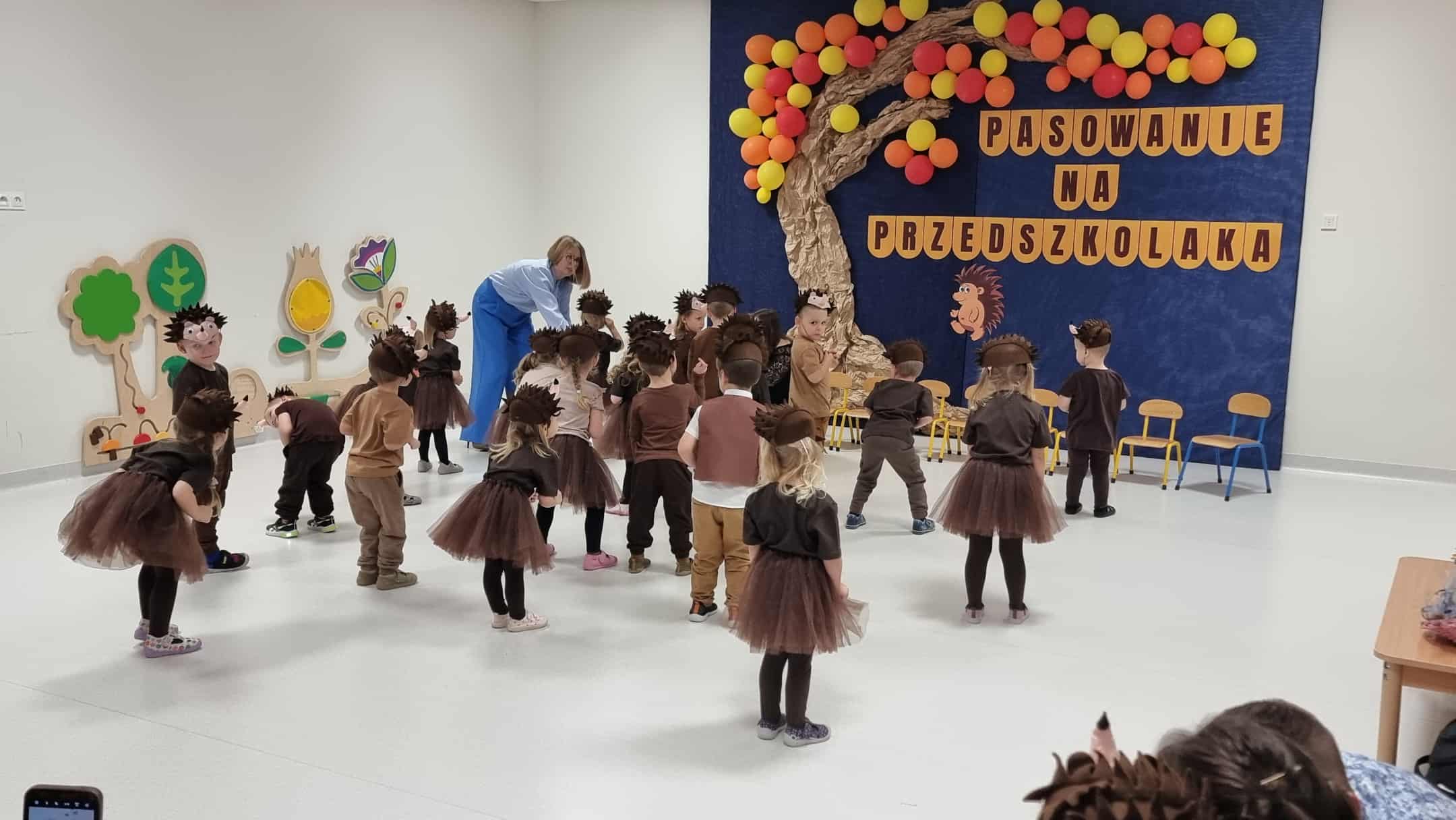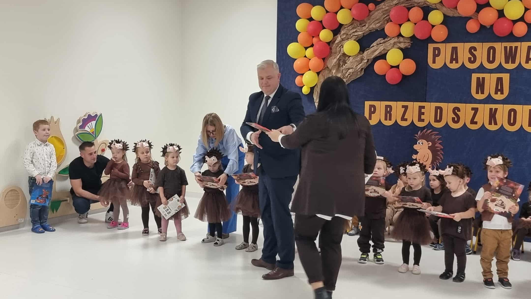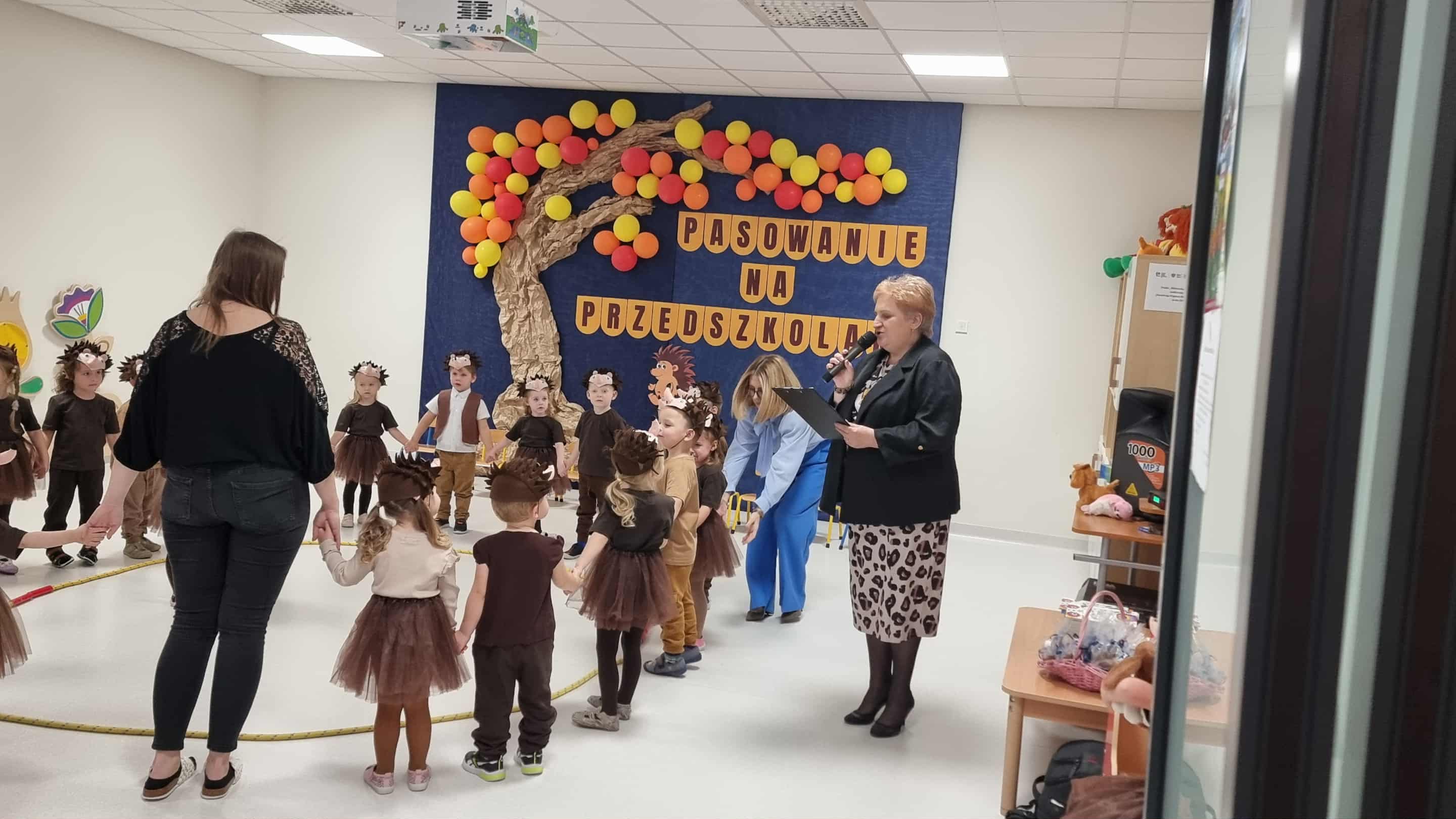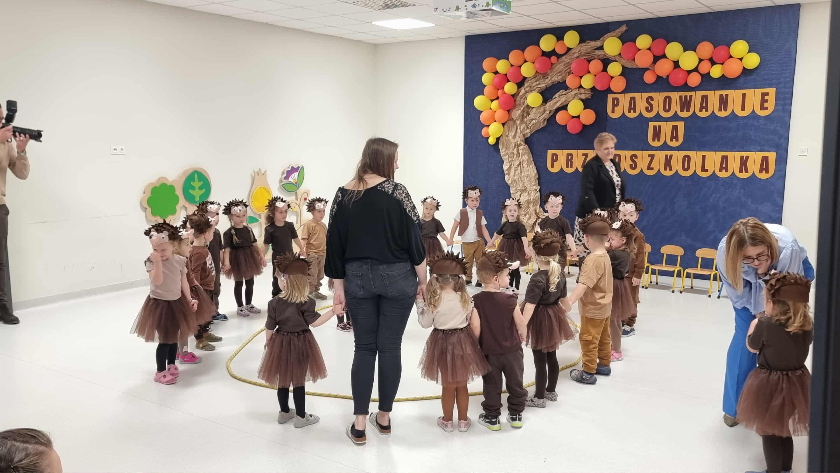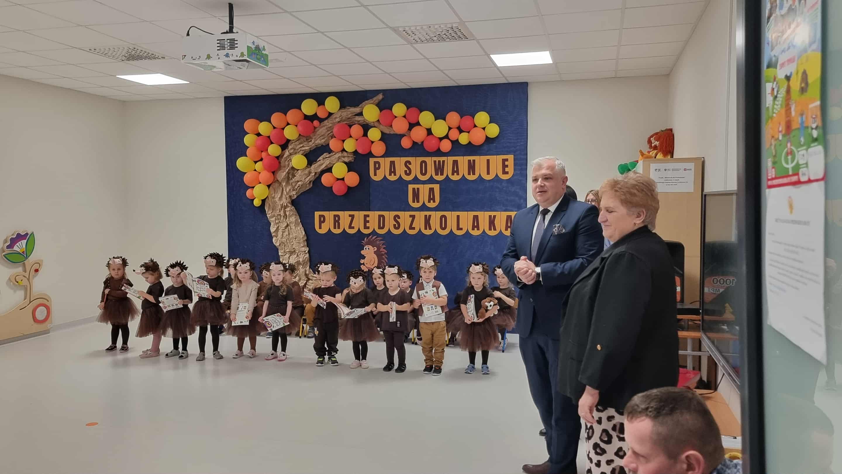 "My, Jeżyki przyrzekamy być dobrymi kolegami. Wszystkie dzieci w grupie lubić i "dzień dobry" głośno mówić. Grzecznie bawić się i fikać, zjadać wszystko z talerzyka. Na zajęciach nie przeszkadzać, zabawki na miejsca odkładać. I obiecać wszystkim wkoło - z nami będzie tu wesoło!" 14 listopada w naszym przedszkolu odbyło się wyjątkowe wydarzenie. Najmłodsze dzieci zostały oficjalnie przyjęte do społeczności przedszkolnej. To jeden z najważniejszych momentów na ich drodze edukacyjnej. "Jeżyki" zaprezentowały program artystyczny, w którym wykazały się niezwykłą odwagą i umiejętnościami zdobytymi z pomocą pani Kasi i pani Emilki. Decydującym momentem było pasowanie przez Panią Dyrektor tradycyjną kredką. Przedszkolaki z wielką powagą odbierały nagrody książkowe, które otrzymały na pamiątkę tego wydarzenia. Swoją obecnością zaszczycili nas goście, a wśród nich Pan Wójt - Marek Sałek oraz Pani Ewelina Nowakowska, którzy dołączyli się do życzeń. Nie mogło zabraknąć także Rodziców, którzy z dumą obserwowali poczynania swoich pociech. Po uroczystości wszyscy wspólnie świętowali.