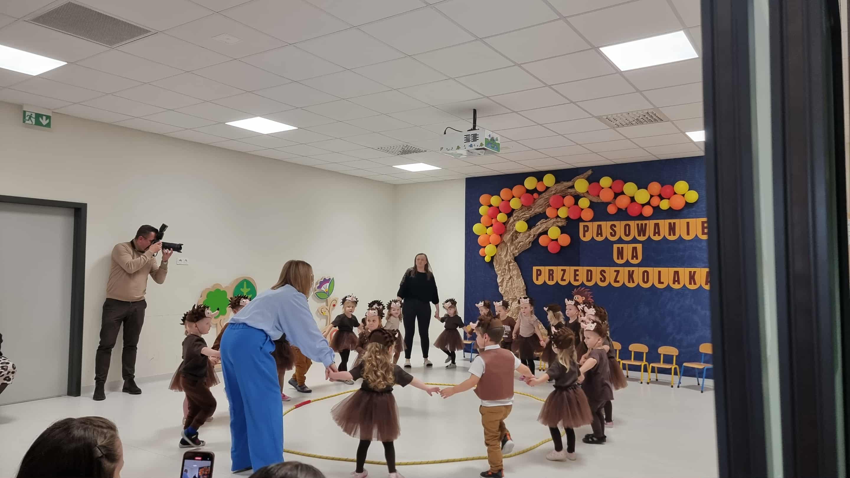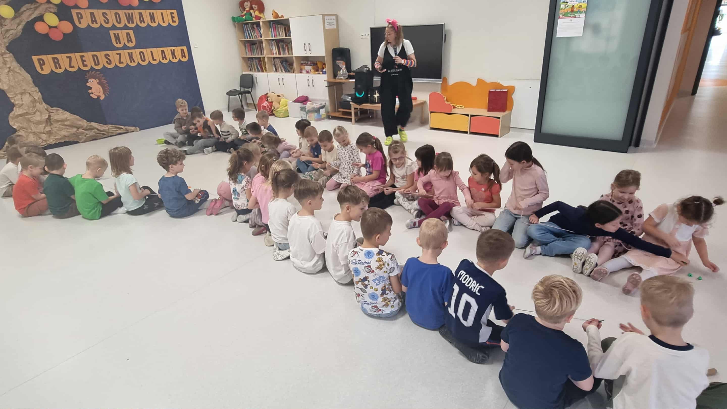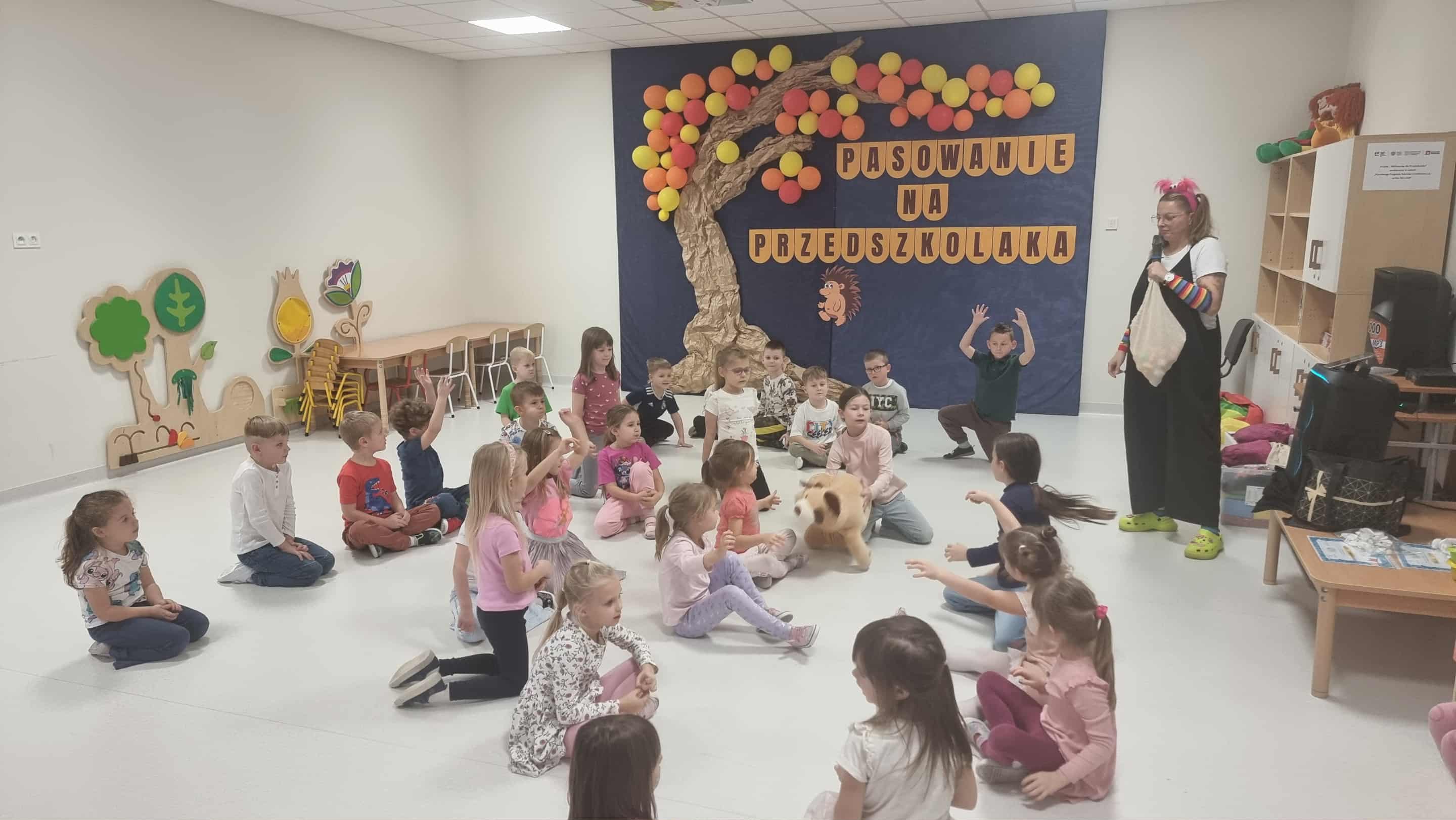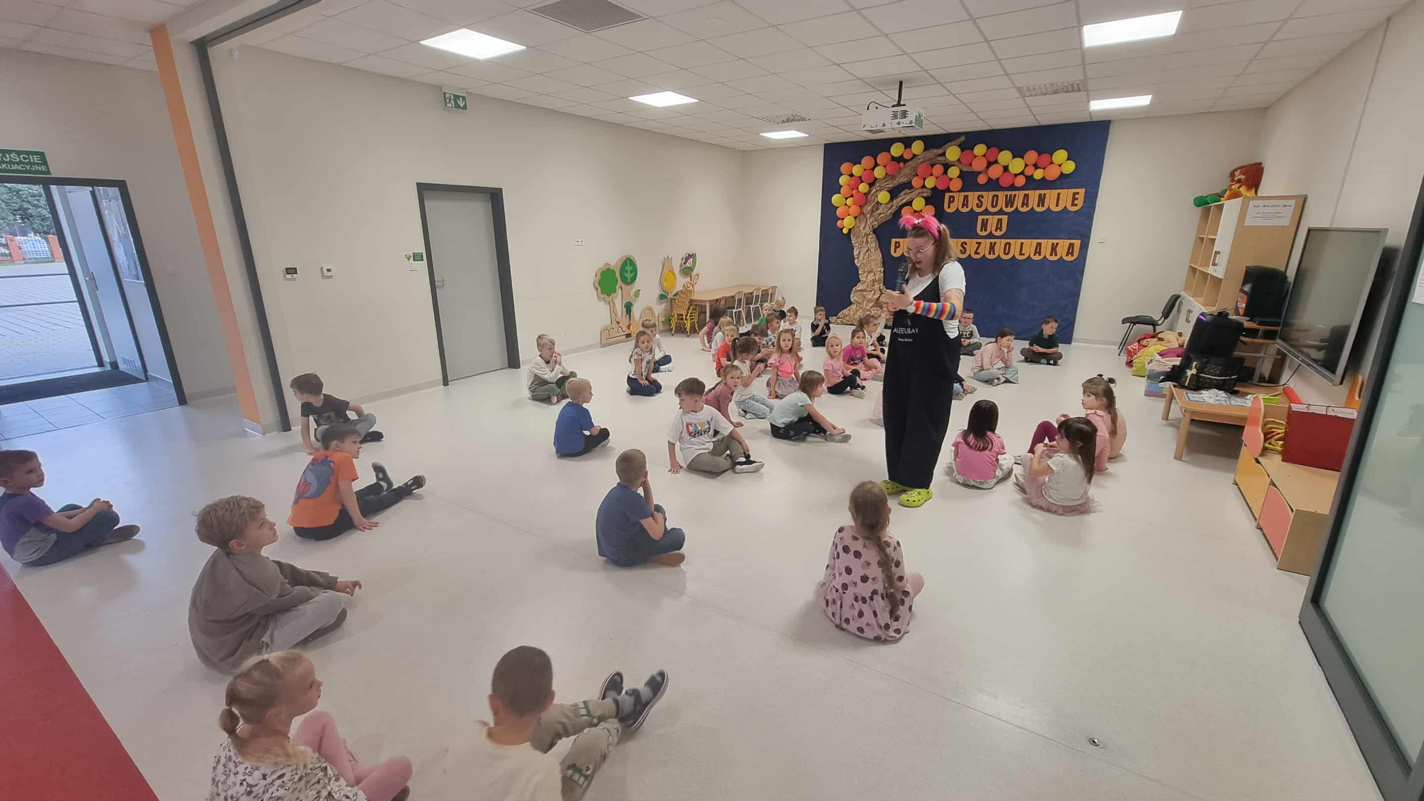 "My, Jeżyki przyrzekamy być dobrymi kolegami. Wszystkie dzieci w grupie lubić i "dzień dobry" głośno mówić. Grzecznie bawić się i fikać, zjadać wszystko z talerzyka. Na zajęciach nie przeszkadzać, zabawki na miejsca odkładać. I obiecać wszystkim wkoło - z nami będzie tu wesoło!" 14 listopada w naszym przedszkolu odbyło się wyjątkowe wydarzenie. Najmłodsze dzieci zostały oficjalnie przyjęte do społeczności przedszkolnej. To jeden z najważniejszych momentów na ich drodze edukacyjnej. "Jeżyki" zaprezentowały program artystyczny, w którym wykazały się niezwykłą odwagą i umiejętnościami zdobytymi z pomocą pani Kasi i pani Emilki. Decydującym momentem było pasowanie przez Panią Dyrektor tradycyjną kredką. Przedszkolaki z wielką powagą odbierały nagrody książkowe, które otrzymały na pamiątkę tego wydarzenia. Swoją obecnością zaszczycili nas goście, a wśród nich Pan Wójt - Marek Sałek oraz Pani Ewelina Nowakowska, którzy dołączyli się do życzeń. Nie mogło zabraknąć także Rodziców, którzy z dumą obserwowali poczynania swoich pociech. Po uroczystości wszyscy wspólnie świętowali.