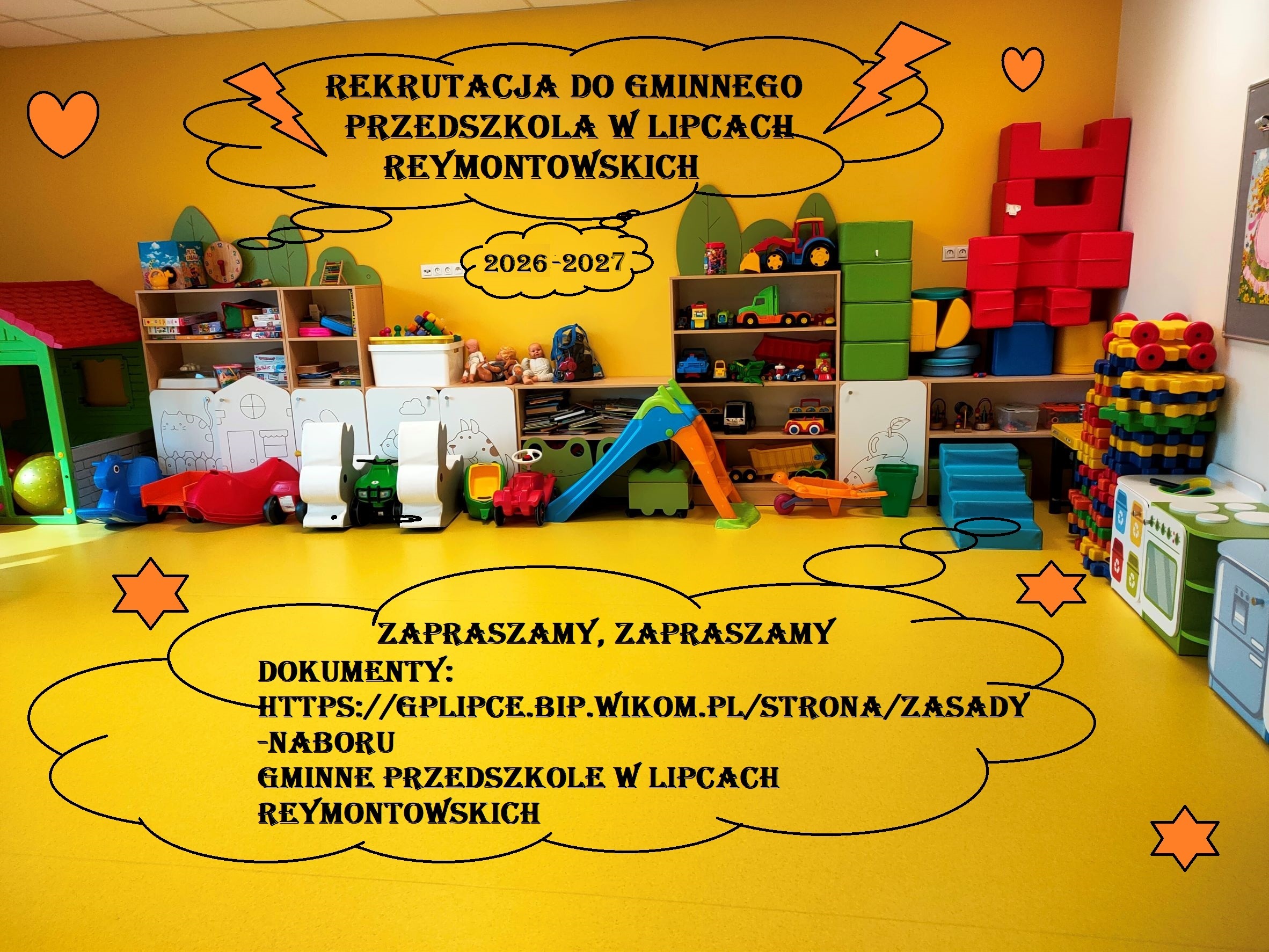 16 lutego rozpoczynamy rekrutację do Gminnego Przedszkola w Lipcach Reymontowskich na rok szkolny 2026/2027. Zachęcamy wszystkich zainteresowanych rodziców do zapoznania się z niżej zamieszczona dokumentacją.