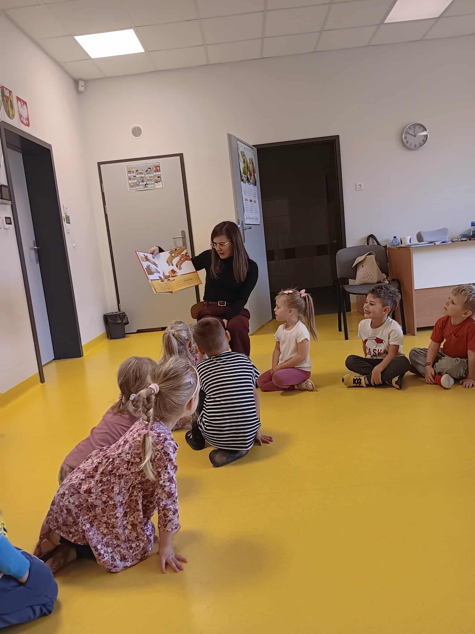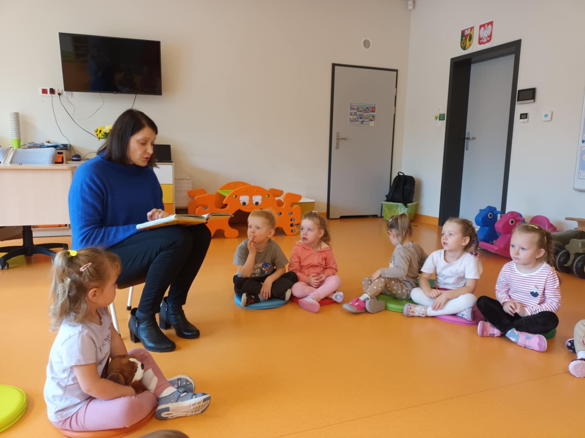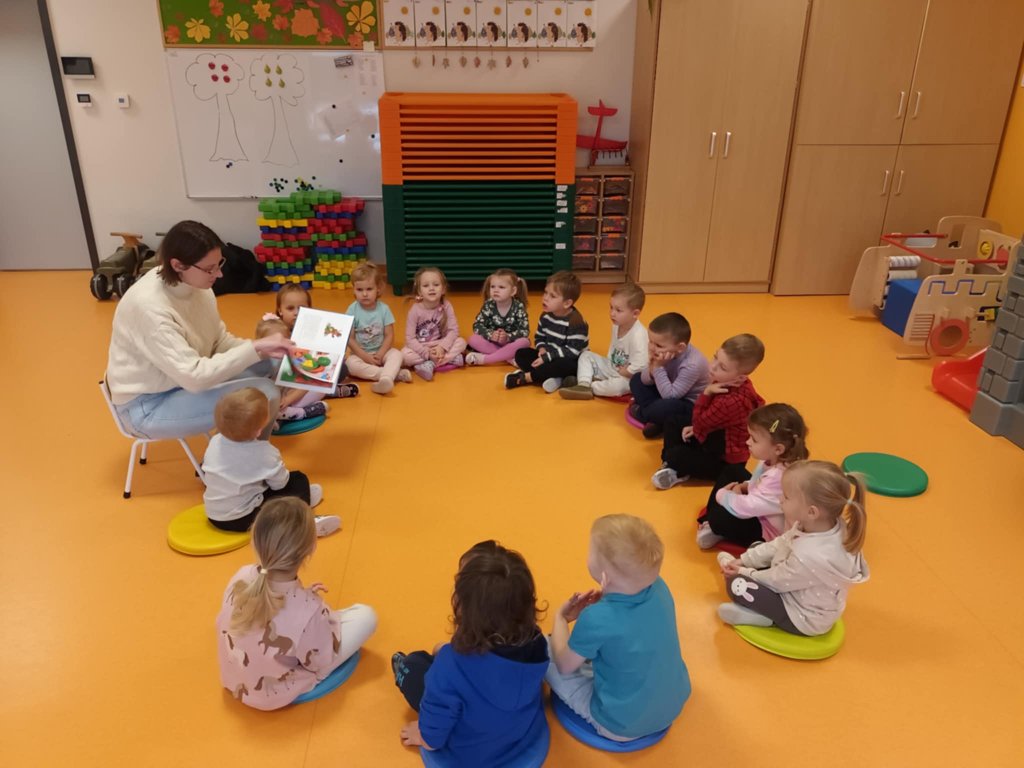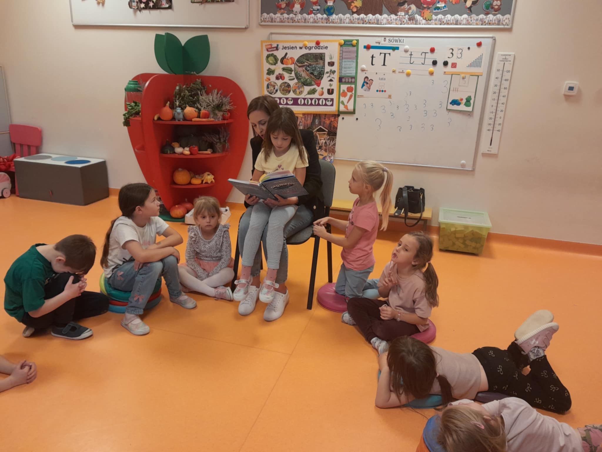 W naszym przedszkolu przez cały tydzień tj. od 13-17 października gościliśmy rodziców naszych dzieci, którzy zgodzili się wziąć udział w akcji "Rodzice czytają dzieciom". Nasze przedszkolaki z ogromnym zainteresowaniem zapoznali się z nowymi bohaterami np. Jadzi Pętelce czy Puciu, przypomnieli też sobie przygody Basi, Franklina i Brzydkiego kaczątka. W grupie Jeżyków gościli Pani Paulina Jęcz, Dominika Fijałkowskiej, Lidia Sinkiewicz. W grupie Tygrysków czytały Panie: Paulina Duda, Magda Gładys, Paulina Białecka. Grupę Sówek żółtych odwiedziły Panie: Marta Jędrzejczyk-Golec, Agnieszka Marat, natomiast grupę sówki pomarańczowe Panie: Anna Wojdak, Paulina Jęcz, Milena Domagała.