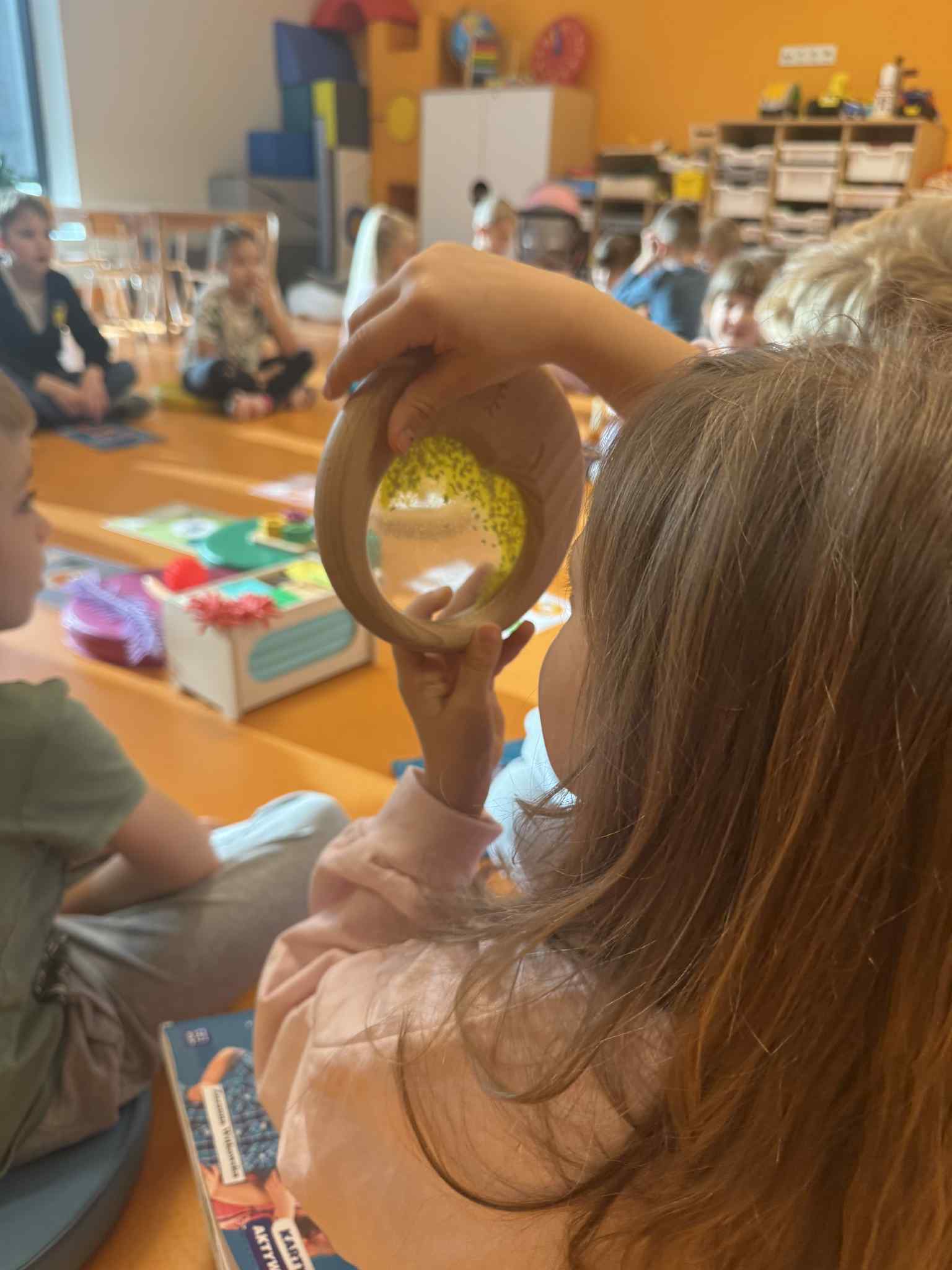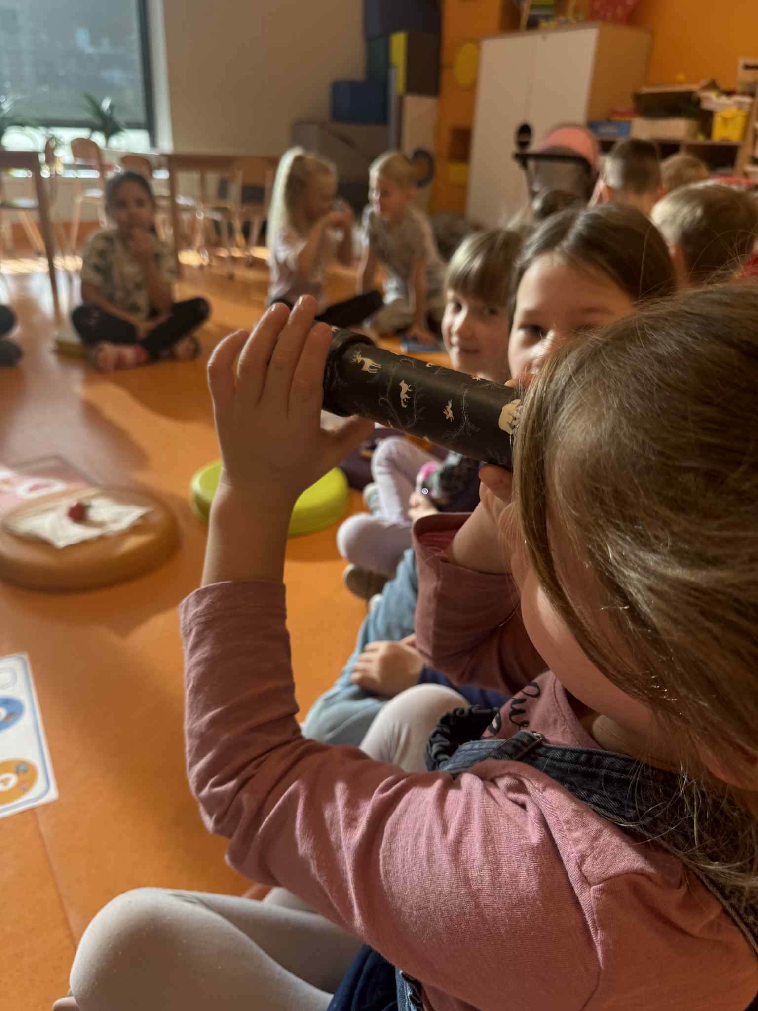 Na zajęciach u Sówek Pomarańczowych dzieci rozwijały świadomość swojego ciała i zmysłów za pomocą aktywnego poznawania otoczenia.